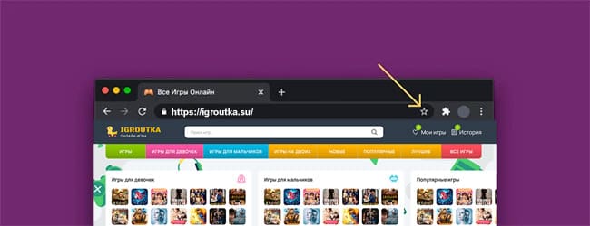 Чтобы добавить сайт в закладки нажмите сочетание клавиш CTRL+D (Windows) или Command + D (Mac OS) или звездочку рядом с адресом сайта.